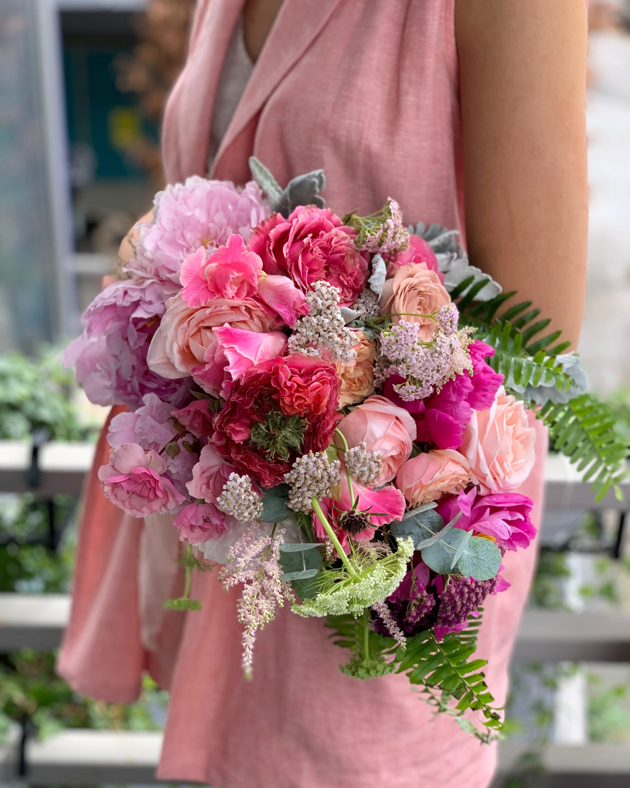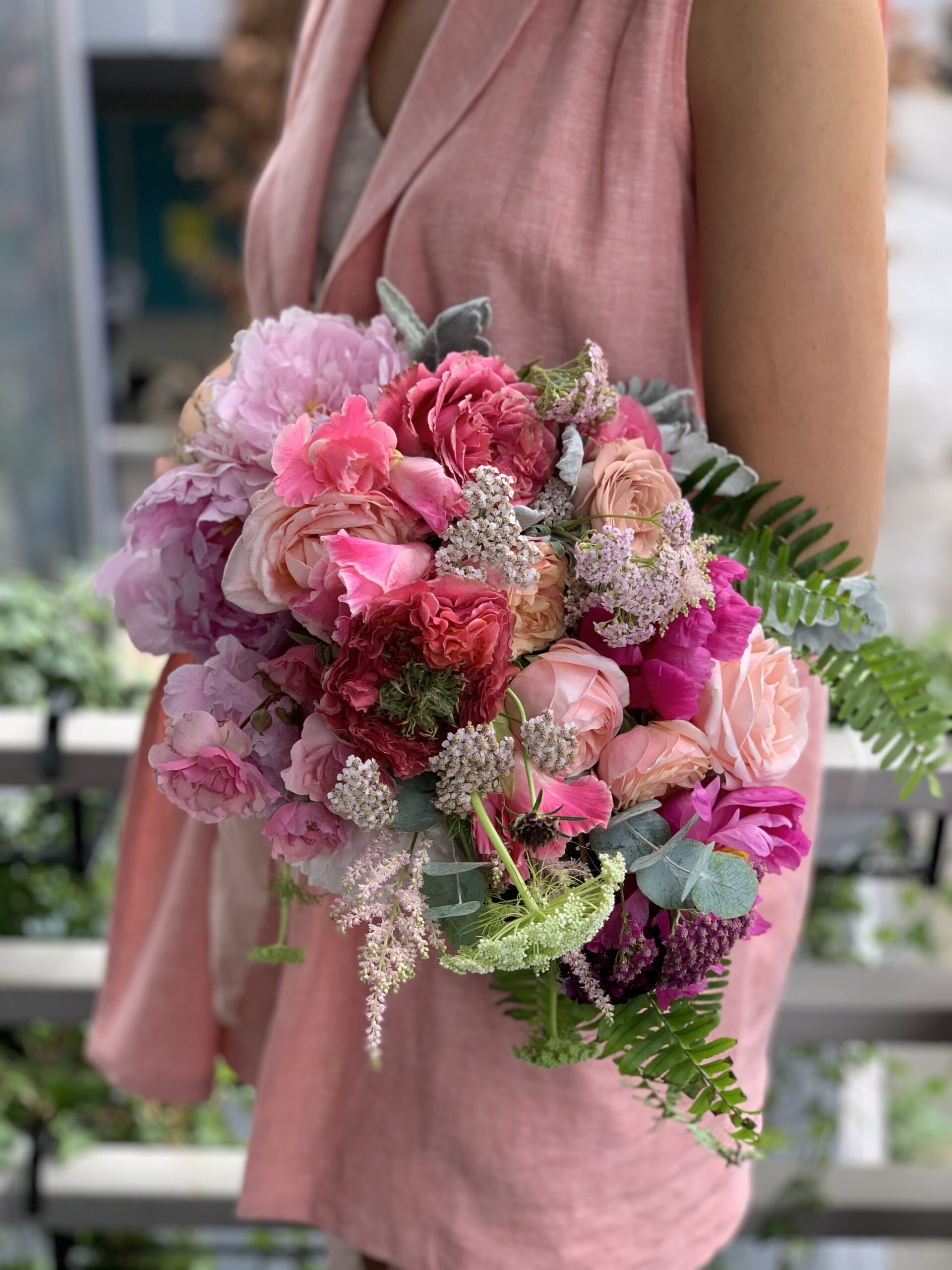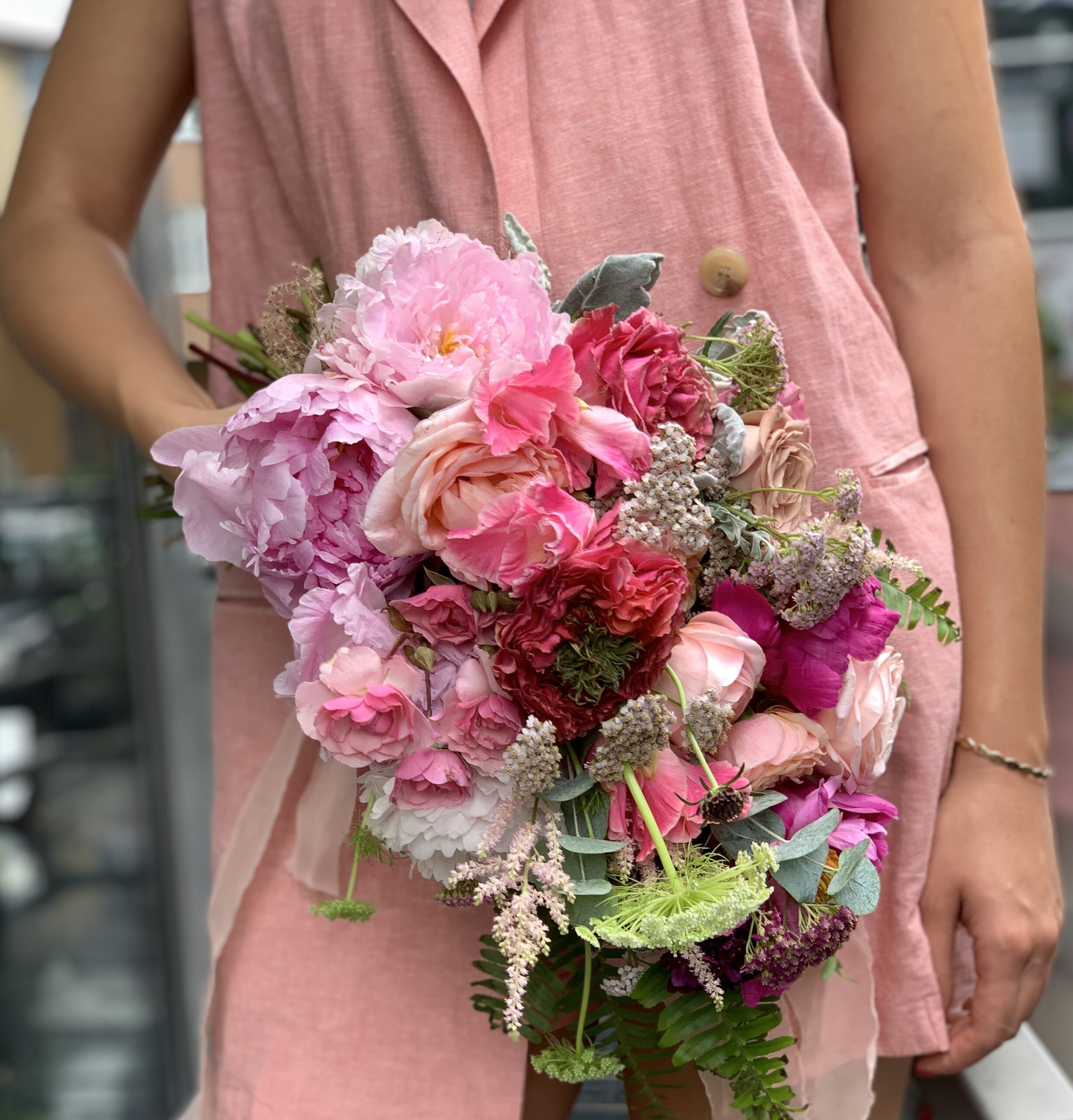 Contine flori delicate si suave: bujori, lalele, ranunculus, trandafiri, mini trandafiri, lisianthus, mini-carnations, feriga.