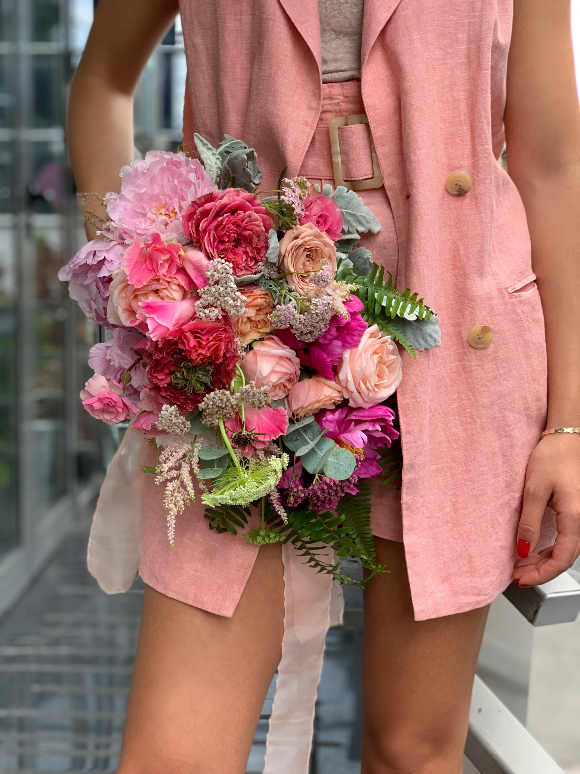 Observatie: florile pot diferi in functie de sezonalitate, dar cromatica, structura si designul floral vor fi respectate. Designul este unul texturat, lejer, natural, romantic, gardening – style.