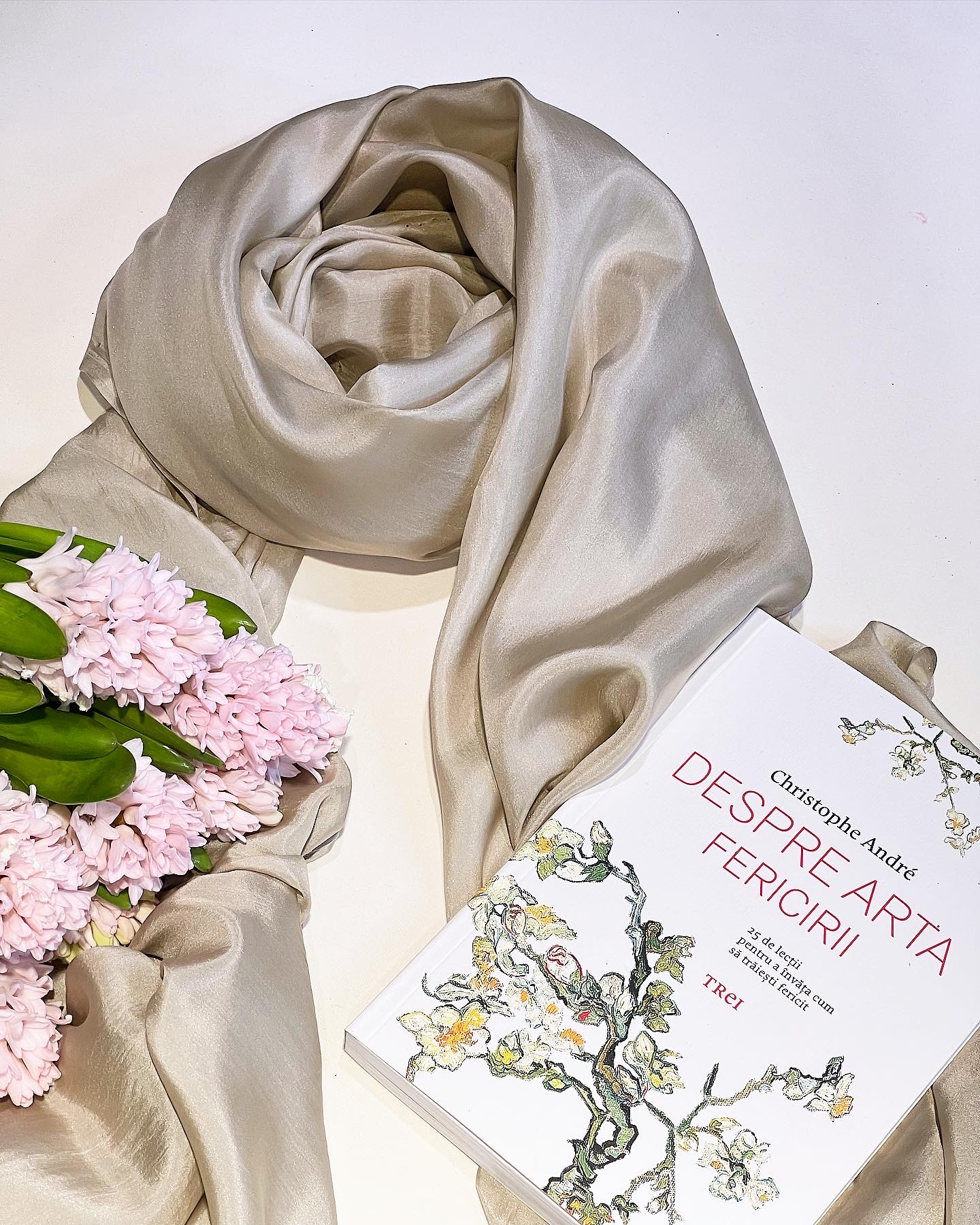 • o esarfa din matase organica, naturala, creata in colaborare cu brand-ul romanesc Mastij (www.mastij.com) // (culorile esarfei pot fi beige sau blue)