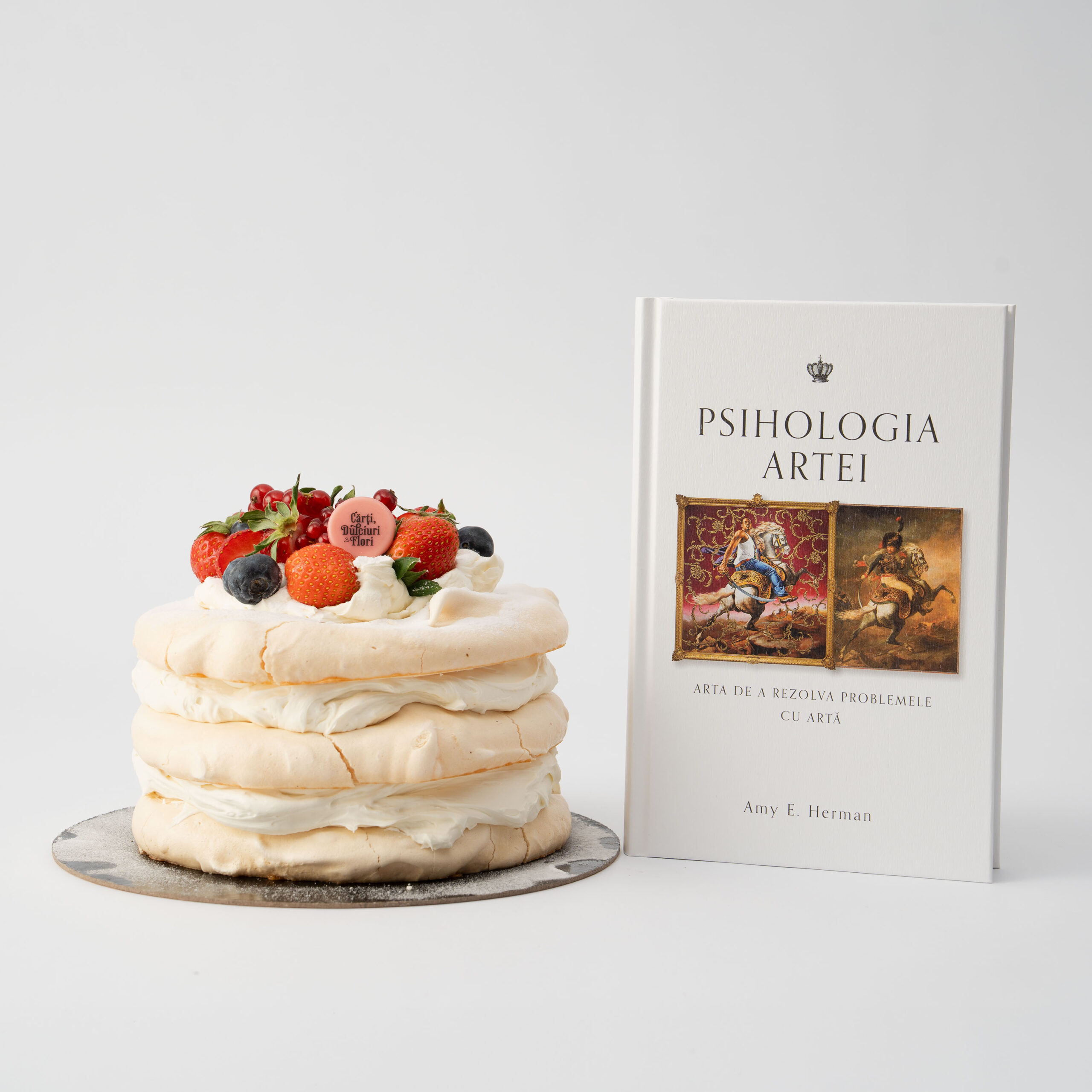 Delicatul mini tort Pavlova cu fructe de pădure aduce o explozie de gusturi fine, completând experiența estetică deschisă de volumul „Psihologia Artei” – o incursiune profundă în felul în care percepem și trăim frumosul.